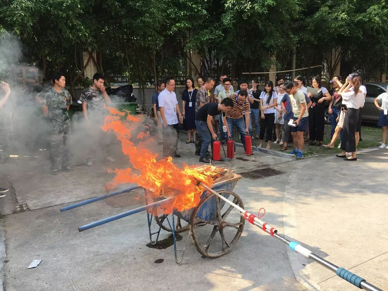 培训人员结合案例给大家讲解了“消防安全”需要具备四个能力,如何认识火灾、防止火灾,如何在人员密集场所疏散与逃生等方面的知识与技能。培训结束后,消防培训人员和集团全体员工以及园区企业代表人员还按照实际消防程序的要求进行了实地消防演练,当消防警笛响起,全体人员跟随消防紧急疏散引导员快速撤离到会议室外,并在室外进行灭火器灭火实地演练。